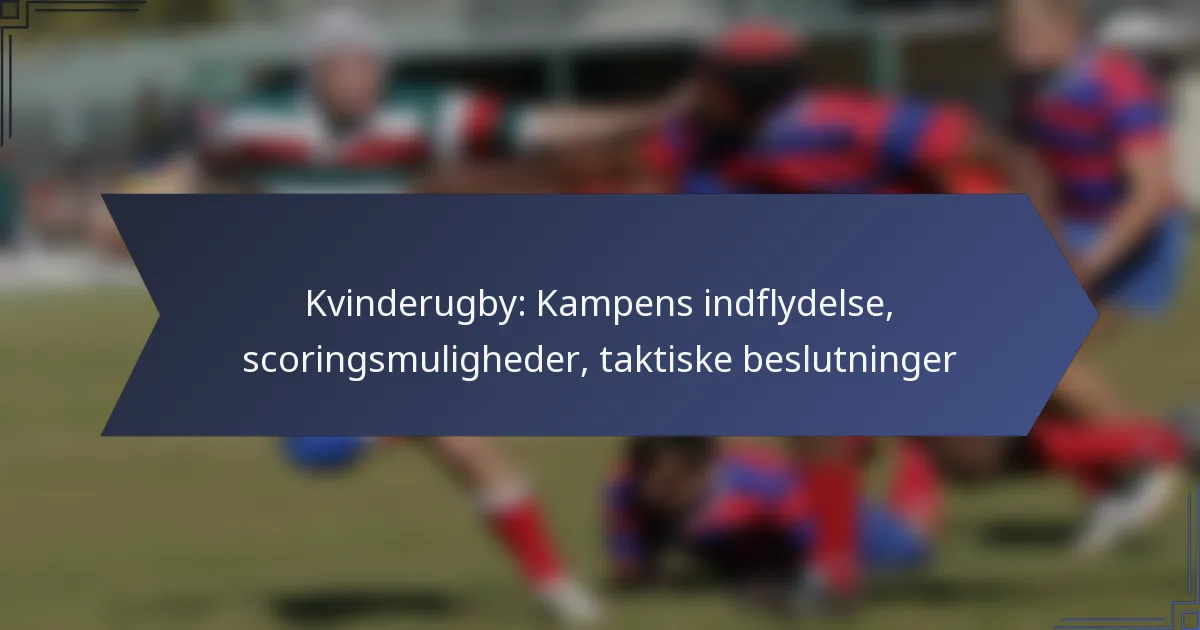 Kvindernes rugby formes af en række faktorer, der påvirker kampresultater, herunder spillerpræstationer, miljøforhold og træningsstrategier. Hold kan forbedre deres chancer for sejr ved at forstå primære scoringsmuligheder som tries, konverteringer og straffespark. Derudover spiller taktiske beslutninger en afgørende rolle, da de bestemmer, hvor effektivt hold kan udnytte scoringsmuligheder og reagere på deres modstandere under kampen.